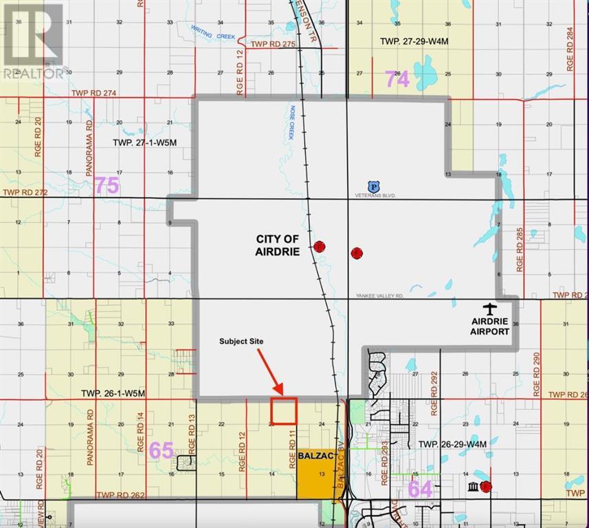 (APPROX 40 ACRES LAND TO BE SUBDIVIDED) Future development land within the WEST Balzac Area Structure Plan, spanning approximately 40 acres up to 160 acres are available to purchase, is now available. Ideally located off the BUSY Range Road 11 and Township Road 264, this property sits north of Goldwyn Development and south of Airdrie's thriving communities. Located right next to Airdrie's boundary line, it offers exceptional potential for future commercial and residential projects. This is a rare opportunity to acquire prime land in close proximity to well-established and rapidly developing areas. The seller is open to providing creative financing options with flexible terms and is willing to entertain offers at market value. Only serious, qualified buyers will be considered. The Property is located in Balzac (ROCKY VIEW COUNTY AB) Not Airdrie. All information should be independently verified. Any location references in the pictures and listing description are approximate and require confirmation for accuracy. Q NE Sec 23 TWP 26 Range 1 Meridian 5 & Rge 11 Rd (id:55577)